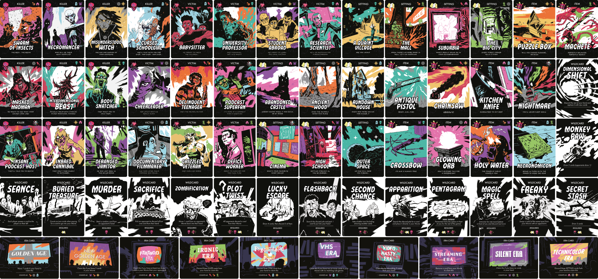 10 Sub-Genre Icons / 4 ACTION ICONS / 40 MOVIE CARDS / 30 ACTION CARDS / 8 INFO CARDS /